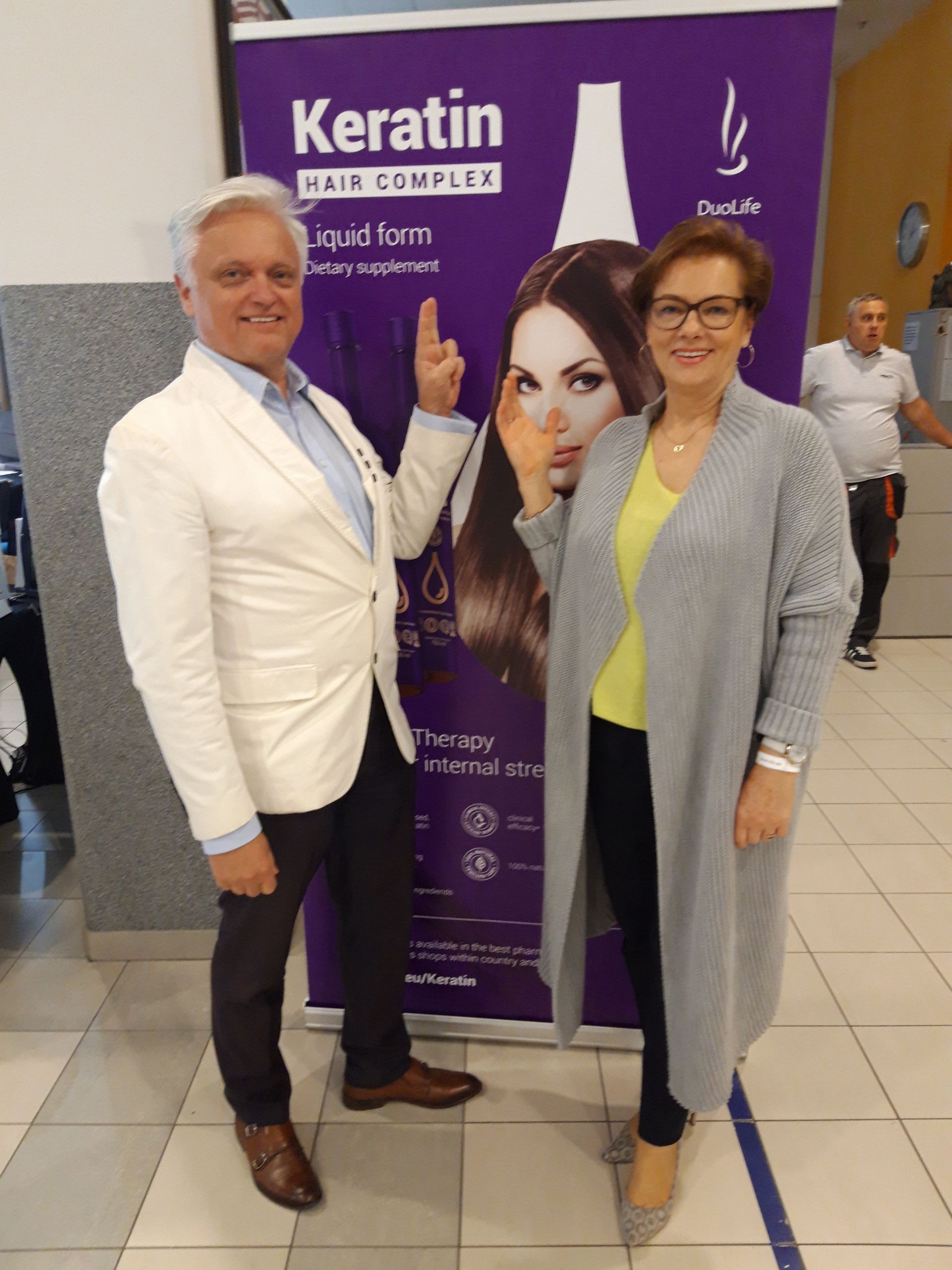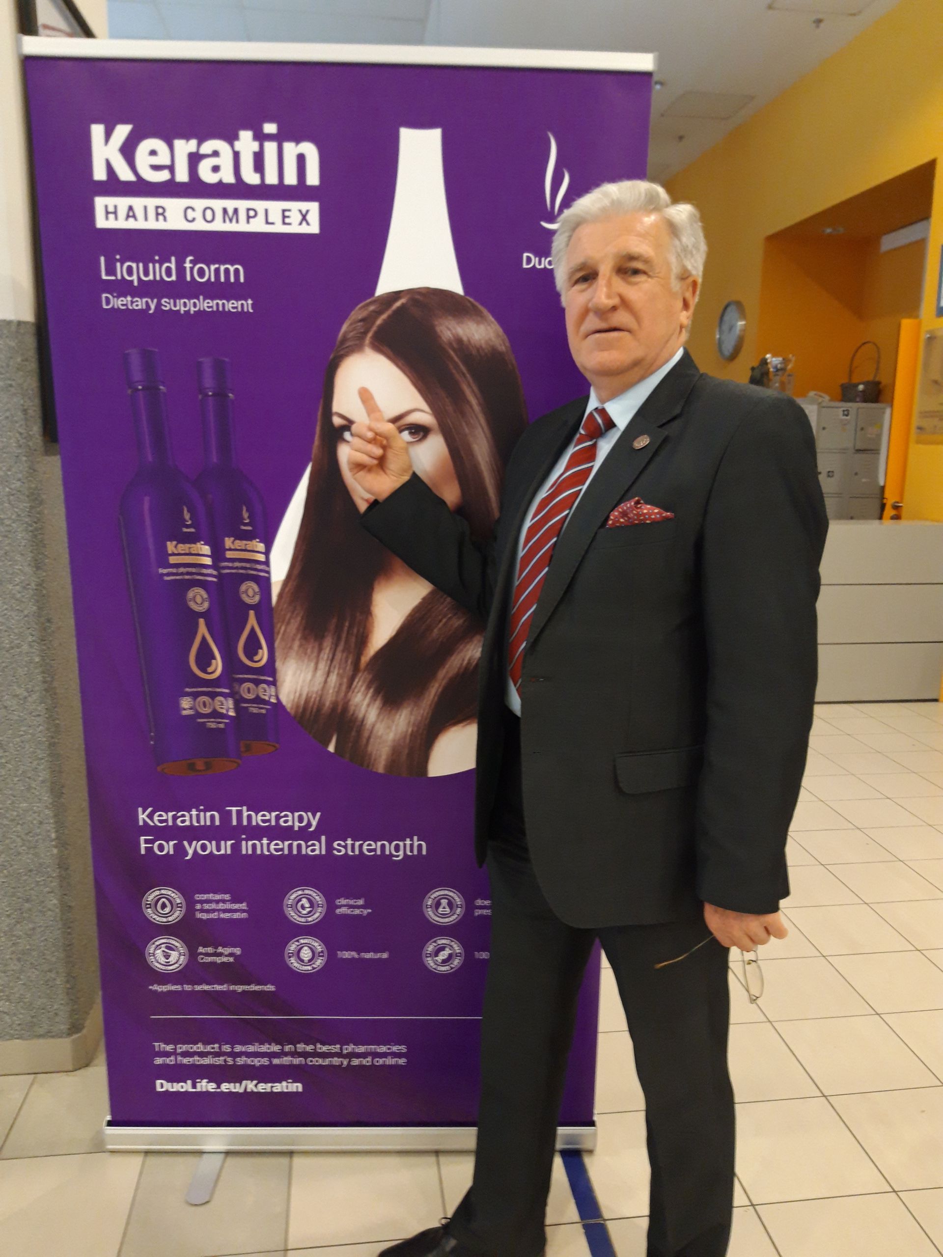 Największą uwagę wszyscy skupili na wystąpieniu dr Kardasza, który omówił skład i działanie wprowadzanego od 16.06.br do sprzedaży nowego produktu na wzmocnienie i regenerację włosów Keratin.
