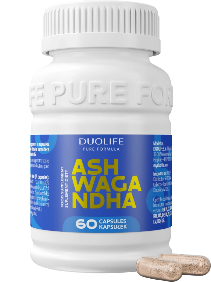 Suplement diety DUOLIFE Ashwagandha jest przeznaczony do stosowania jako wspomagający optymalne funkcje organizmu w przypadku: