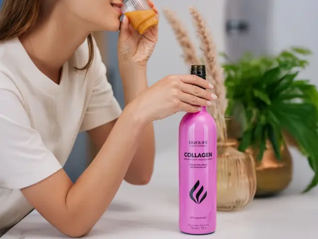 Suplement diety DUOLIFE Collagen to połączenie kolagenu ze skór ryb morskich, siarczanu glukozaminy ze skorupiaków, siarczanu chondroityny z rekina, kwasu hialuronowego oraz ekstraktów roślinnych z aceroli, pędów bambusa oraz ze skrzypu polnego.