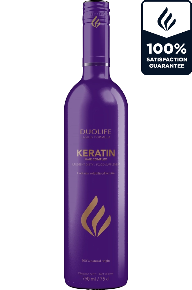 Produkt DUOLIFE Keratin Hair Complex to połączenie soków owocowych, formuły ekstraktu z czarnego ryżu i kwiatów opuncji figowej, keratyny solubilizowanej, ekstraktu z organicznych pędów grochu oraz wielu innych cennych ekstraktów roślinnych.