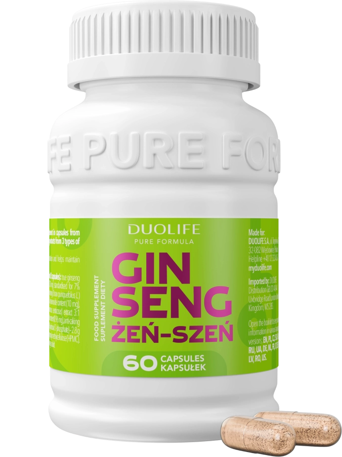 Suplement diety DUOLIFE Żeń-szeń jest przeznaczony do stosowania jako wspomagający optymalne funkcje organizmu w przypadku: