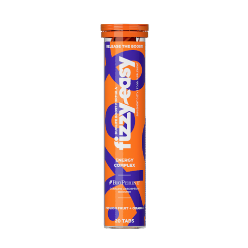 DuoLife Boost Formula FIZZY EASY Energy COMPLEX to tabletki musujące do przygotowania orzeźwiającego napoju o owocowym smaku (smak marakujowo-pomarańczowy).