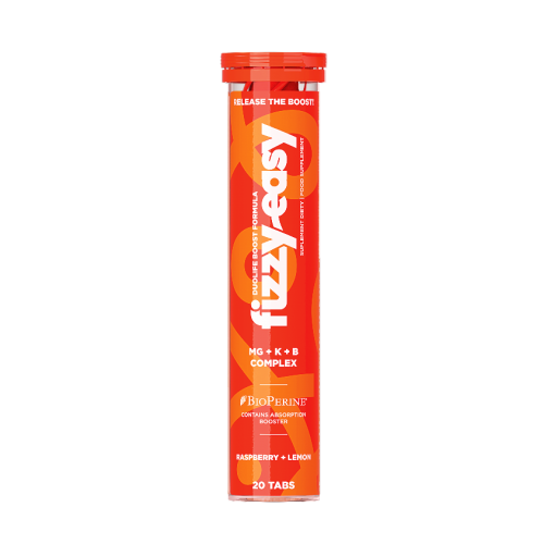 DuoLife Boost Formula FIZZY EASY Mg + K + B COMPLEX to tabletki musujące do przygotowania orzeźwiającego napoju o owocowym smaku (smak malinowo-cytrynowy).