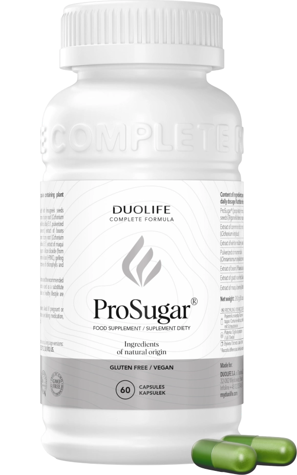 Suplement diety ProSugar® to połączenie zastrzeżonej formuły ProSugar® pozyskanej z nasion kozieradki pospolitej, sproszkowanej kory cynamonu, ekstraktu z liści morwy białej, ekstraktu z owoców maqui oraz wielu innych cennych składników roślinnych.