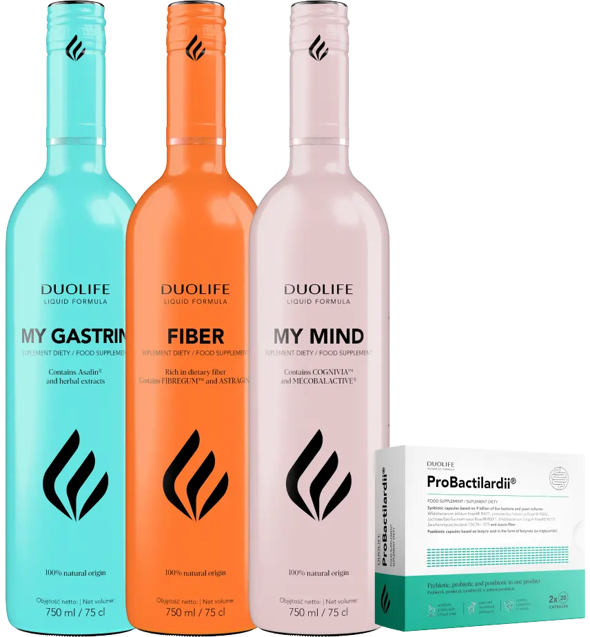 Zawarte w produktach składniki aktywne wspomagają zdrowie jelit i funkcje układu pokarmowego oraz pomagają w prawidłowym funkcjonowaniu układu nerwowego.